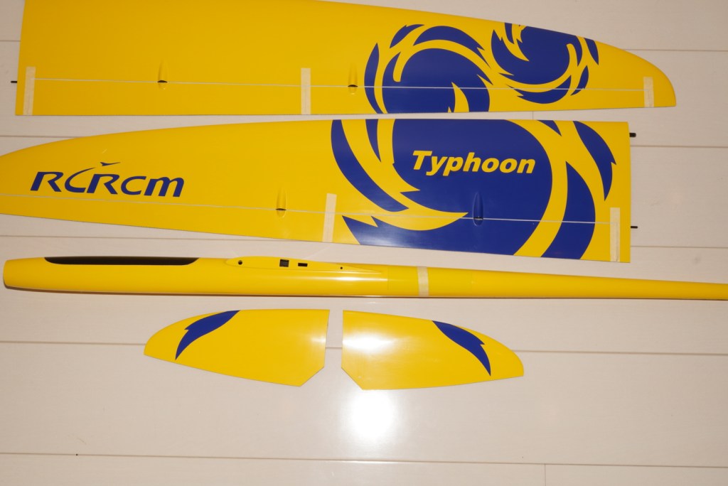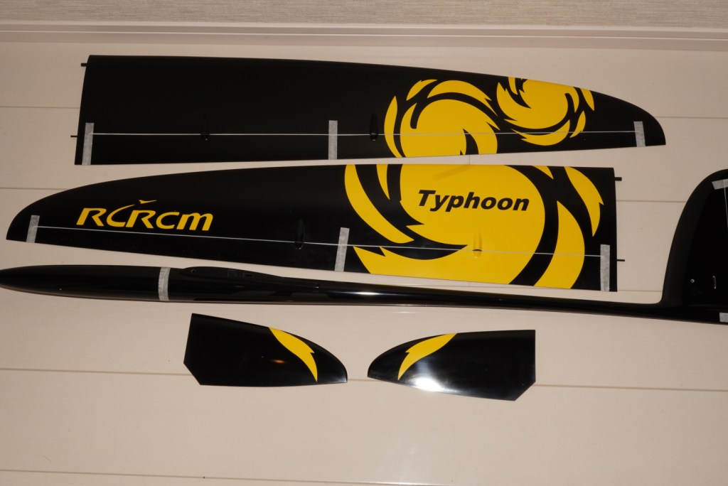 RRCRCMの今までみた機体の中で、Typhoonだけはグラスversionの翼表皮の構成が他の機体と異なりました。他が薄いバルサにマイクログラスを貼った表皮なのに対しTyphoon はグラス層だけでバルサ層が無い構造です。グラス層はそれなりの厚みがあり、Nan modelの機体など東欧機によくある構造です。実際触ってみた感じではグラスでもしっかりしておりTyphoonはこれで十分と思えます。カーボンバージョンはグラスとカーボンの2層になっている様です。ただし、ダブルカーボンとなるとさらに相当しっかりしていますがDSしないなら要りません。胴体はグラスバージョンも十分丈夫ですが、カーボンバージョンはそう簡単には折れない程丈夫です。ロングセラーの機体だけあり各所が良く出来ています。
